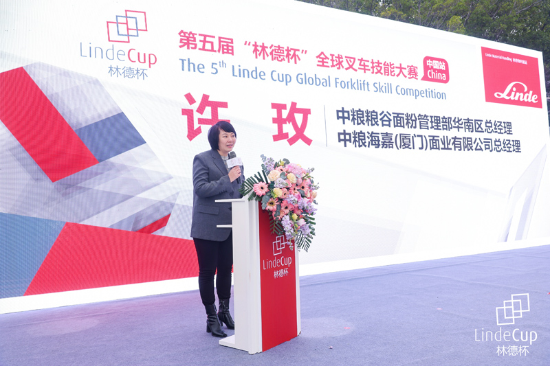 一直以來,林德(中國)始終關(guān)注客戶需求,為客戶提供優(yōu)質(zhì)的產(chǎn)品和物料搬運(yùn)整體解決方案。現(xiàn)場,中糧糧谷面粉管理部華南區(qū)總經(jīng)理、中糧海嘉(廈門)面業(yè)有限公司總經(jīng)理許玫在開幕式中表示對本次賽事充滿了期待,對于與林德的合作也充滿了信心:“近年來,林德(中國)不斷追求創(chuàng)新,開發(fā)了一系列自動化、數(shù)字化、新能源的產(chǎn)品和解決方案,以高度靈活性和強(qiáng)大的實(shí)力助力我們企業(yè)向智慧化、綠色化物流轉(zhuǎn)型升級。”目前,共有數(shù)十臺定制化、不同型號的林德叉車在倉庫運(yùn)轉(zhuǎn),承擔(dān)著中糧海嘉小麥生產(chǎn)、出庫、裝車發(fā)貨等環(huán)節(jié)的搬運(yùn)。