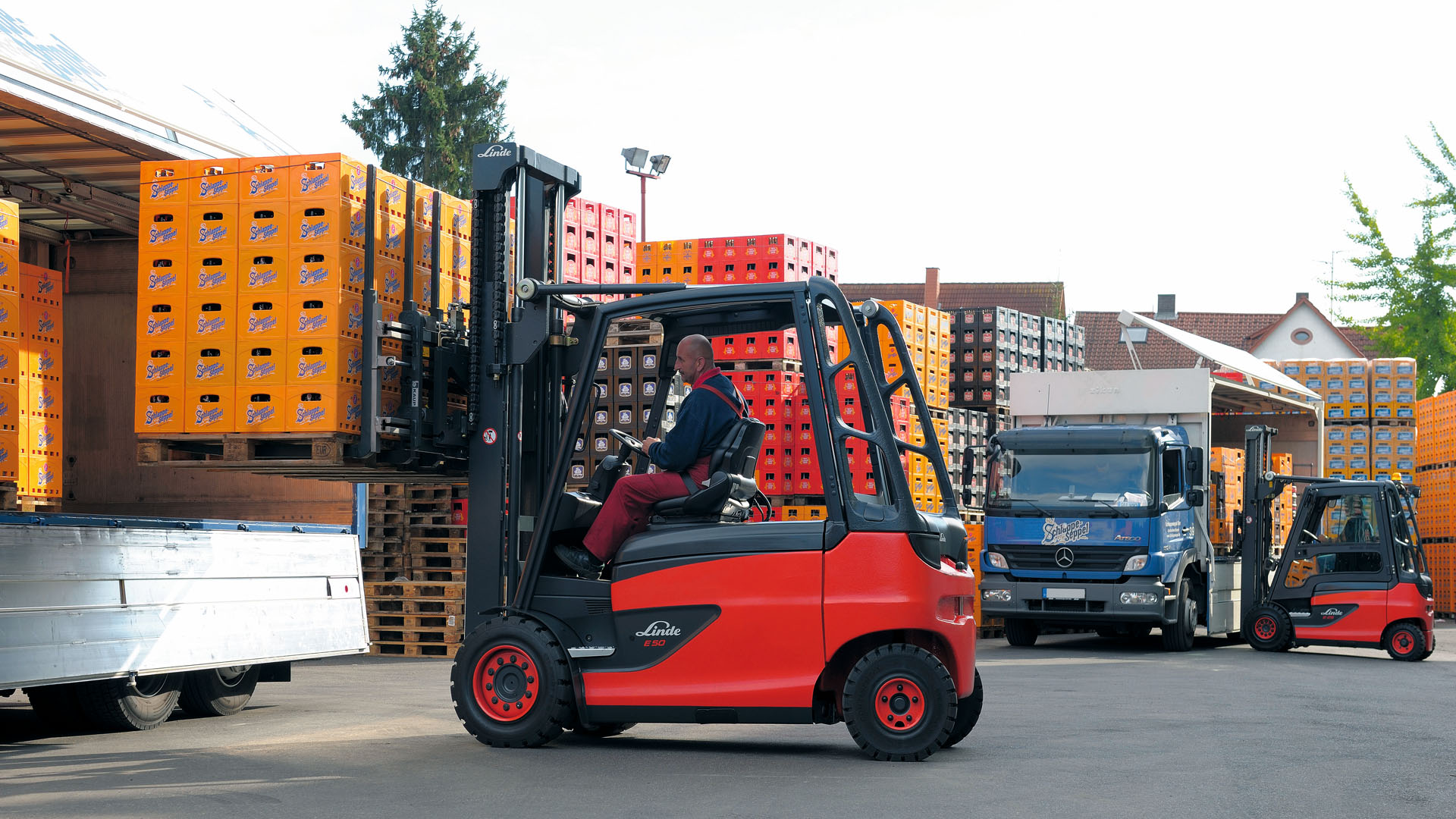 Whether for the preparation of food and beverage or the handling of the finished food and beverage, Linde twin pedal system and joystick system can guarantee high efficiency. A customized fortified and wider fork carriage with side shift function, matching the wider load backrest and load stabilizer create greater logistics than expected for large-capacity beverage. The consistent technical characteristics of Linde always gives out its unique charm in details which shows the design concept of humanization, efficiency and safety.